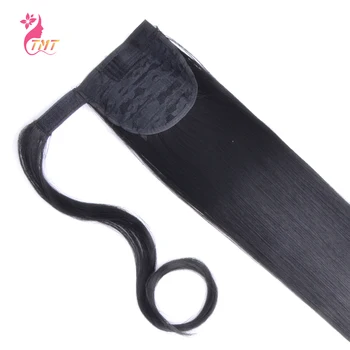 Extensão sintética reta longa do cabelo do rabo de cavalo, envolva em torno das extensões do rabo de cavalo, cabelo natural, headwear