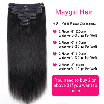 Extensões de cabelo reto para mulheres, extensões de cabelo com grampo, Double Weft Virgin, 100% cabelo humano, cor preta natural, 18 clipes, 120g, por conjunto