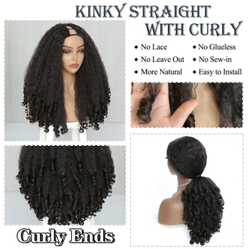 X-TRESS-Peruca Afro Curly V Part para Mulheres Negras, Kinky Straight com Pontas Encaracoladas, Glueless, Sem Deixar de Fora, Clip em Metade Perucas Sintéticas