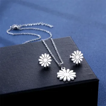 316l aço inoxidável nova moda jóias elegante daisy flores charme corrente gargantilha colares conjunto de pingentes para mulher