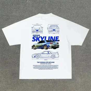Camiseta de manga curta com gola O masculina, tops estéticos femininos, com estampa de carro popular, verão, nova moda, Y2K, 100% algodão