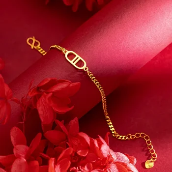 Pulseira Double D Pig Nose, 999 Ouro Real, 24K Ouro Amarelo, Letra Sensada Avançada