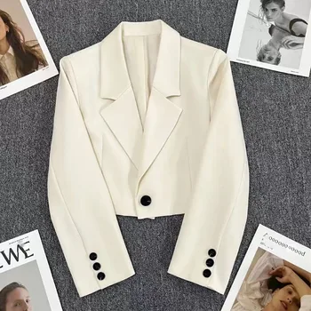 Xpqbb-Blazers femininos pretos cortados, jaqueta com colarinho entalhado, casaco que combina com tudo, chique coreano, terno de botão único, tendência, novo, 2024